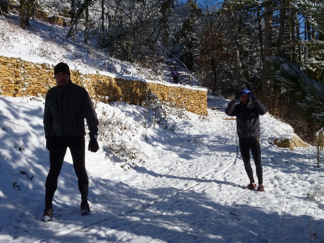 Rentré depuis peu de Millau, Patrick teste ses cuisses sur une série de marches