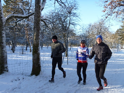allez, on court, parce qu'il ne fait pas chaud, ici non plus. Ma jupette a froid! Enfin, avant la montée de la côte, après, elle est fatiguée, mais ça va mieux.