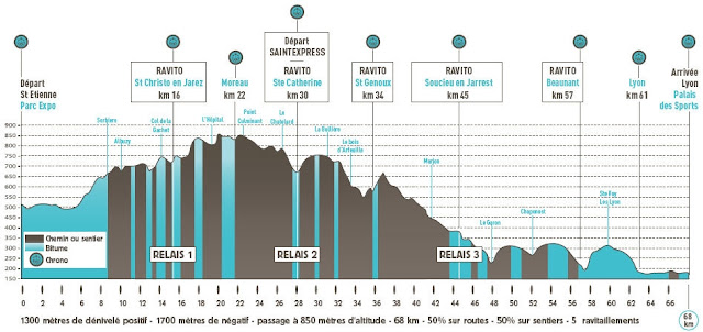 Bon courage à tous, pour la première partie admirer bien les mont du lyonnais, quand à la deuxième partie, courir de nuit c'est magique "ça n'a rien à voir"